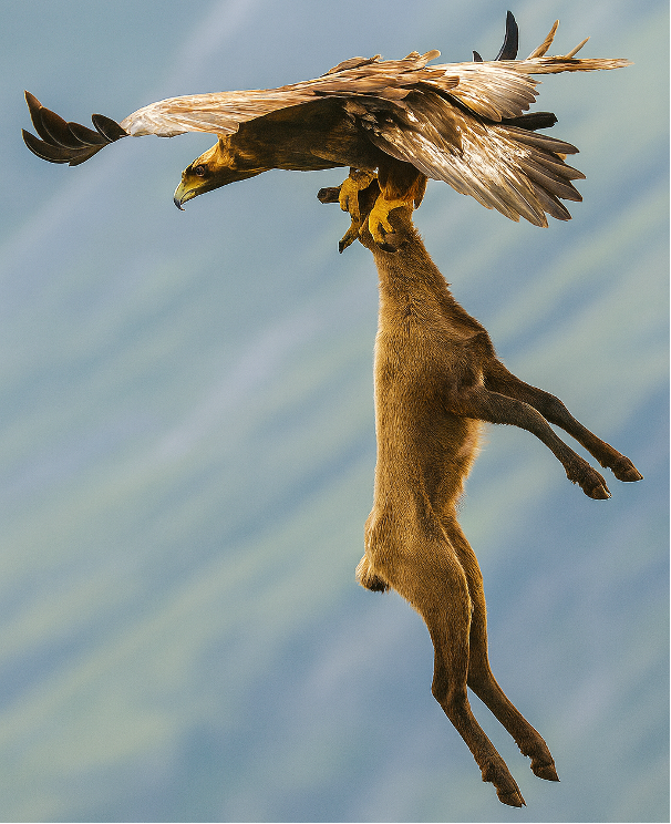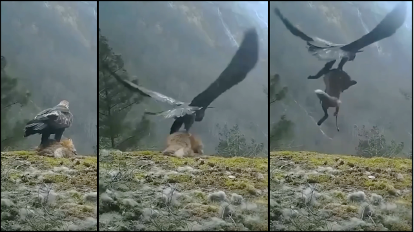 Golden Eagle lifts and flies away with a fox.[3]